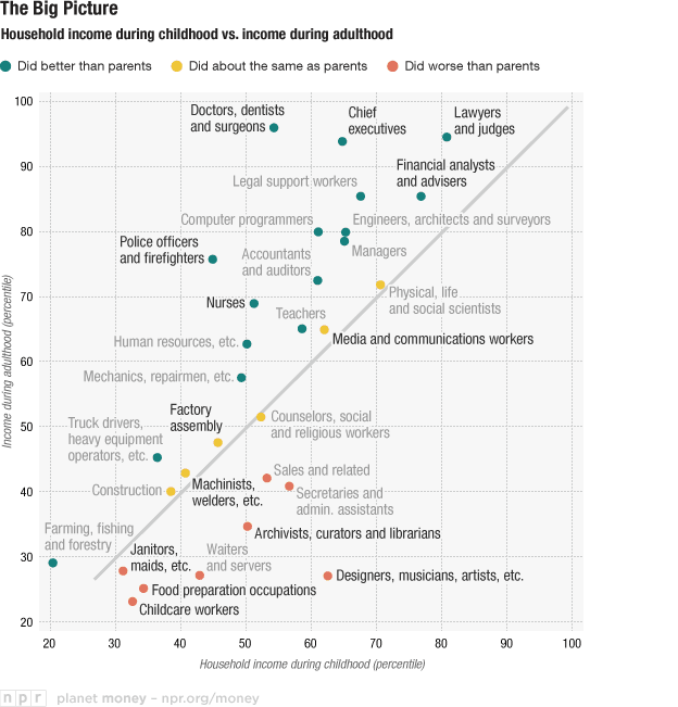 I wish I wish I wish that the NPR staff had sussed out the connection between parental profession and the field that children chose as they grew up. Anyone interested in poking around in the NLS data to see if we can find that?