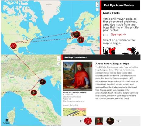 Over the course of a three year grant period, Mia went from paper prototypes to a robust web-based platform that covers seven topic areas from the spread of Buddhism to the topic articulated above, red dye from Mexico. The Digital Experience (TDX) team led the work and includes members from curatorial, education, and media and technology. Because of the cross-functional nature of the team, it helped to ensure the tool and its content was developed collaboratively and inclusive of multiple perspectives.