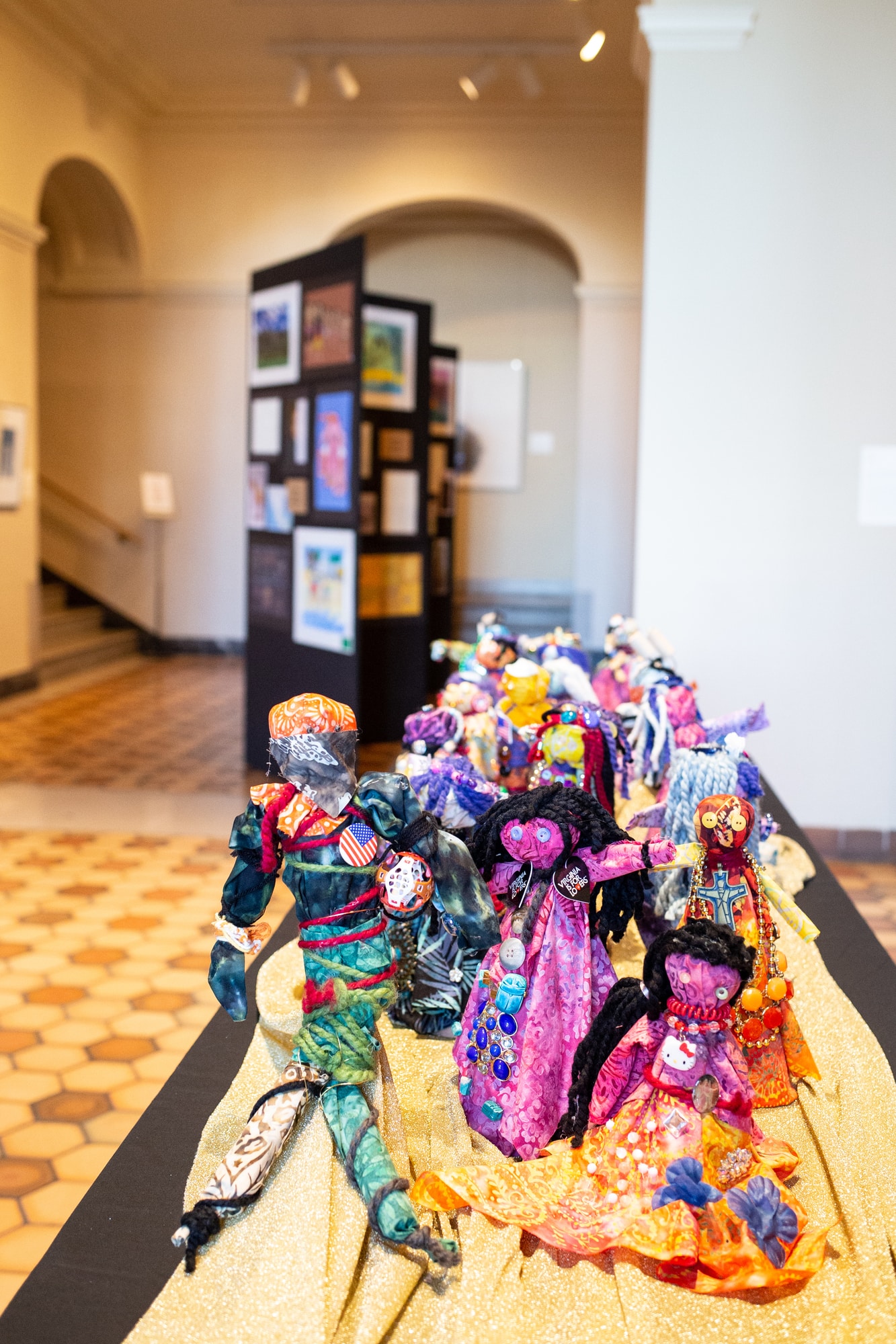 At the end of the year, The Fralin hosted a special exhibition of the Greenbrier studentsā projects, which displayed each childās body of work like a constellation around their self-portrait. This way, the children, their friends and families, and the community could come see the results of the program on display.