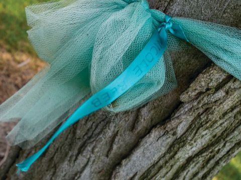 In early 2018, survivors’ family members and allies wrapped more than 200 campus trees in teal-colored bows, each bearing the name (or victim impact number) of a sister survivor. The marked trees became sites of prayer and reflection for many survivors and parents.