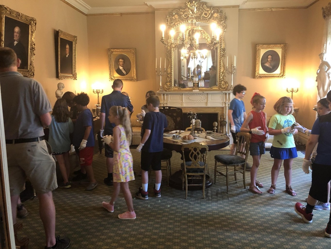 Once the premise of a community-structured camp was in place, representatives from the three sites decided on the details. The camp would run a full week from 9 a.m.–3 p.m. each day, with the hope of being accessible to working families. The theme would be “Hands-On History,” with the goal to provide an immersive and interactive historic experience for campers highlighting each site’s unique narrative, then tie them together to celebrate the community. For the Tubman house, this meant an archeological dig; for the SHM, Victorian-era games, tea, and a “white gloves” tour exploring the museum’s artifacts (pictured above); and for the Cayuga Museum of Art and History and Case Research Laboratory, developing movies that were then shown to campers and their families—the Case Lab, after all, was the birthplace of sound-on-film technology! These cross-curricular activities helped keep the camp engaging, and were guaranteed to build on something the campers were learning during the school year.