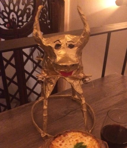 The prize for winning “The Crowning” was this handmade crown resembling the papier-mâché bull used in a traditional Oaxacan calenda procession.