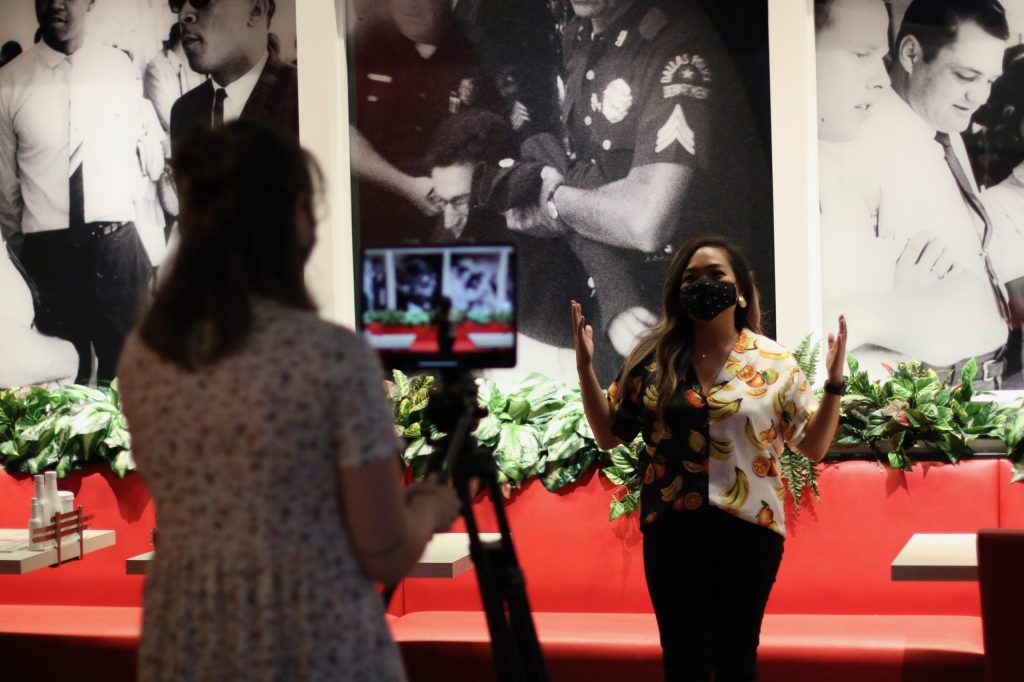 • Don’t be afraid to maintain a live dialogue with students. Students are used to conversing on online and virtual platforms. If you engage them, they will respond. We learned quickly to use this to our advantage. We ask them questions and encourage them to ask questions of us, which leads to conversations about important topics connected to the exhibit. We have realized it is good to let students talk and ask questions, even when it deviates from the tour. This was scary at first, because so much can go wrong, but it has ended up being rewarding both for the students and for our docent educators leading the tours.