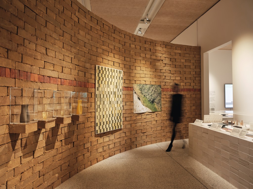 The exhibition also pursued a low carbon footprint by using salvaged materials, such as a central wall and plinths that had previously been used in other exhibitions. For new walls and display furniture in the exhibition, the designers chose materials such as locally sourced clay, wool, and engineered timber, and built a wall of unfired adobe bricks with no fittings to be reused in future exhibitions. In the audit, they were surprised to learn that the exhibition material with the highest carbon footprint was the stainless-steel screw. They used roughly 4,800 stainless-steel screws to hold the exhibition elements together, resulting in 1.9 tonnes CO2e, or roughly 7 percent of the total exhibition footprint. Using timber-framed walls instead of aluminum studs saved 1.5 tonnes CO2e. Using unfired bricks instead of fired bricks saved 6 tonnes CO2e. Digital communications such as email, video calls, and file sharing contributed about .75 tonnes CO2e, or about 2.7 percent of the total carbon footprint.