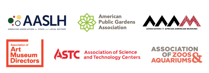 American Institute for Conservation · Americans for the Arts · ALHFAM: Association for Living History, Farm and Agricultural Museums · Federation of State Humanities Councils · Michigan Museums Association · Mountain-Plains Museums Association · PA Museums · South Carolina Federation of Museums · Southeastern Museums Conference · Western Museums Association · Wisconsin Federation of Museums